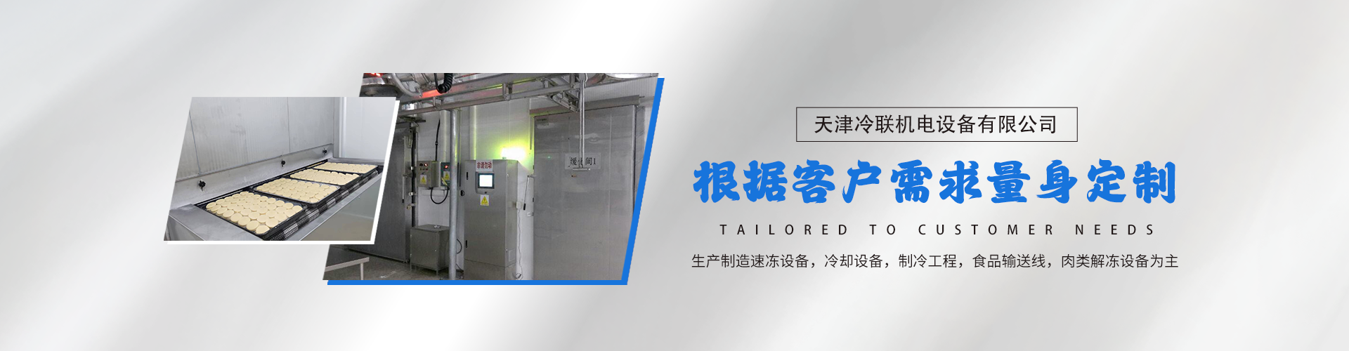 天津冷聯(lián)機(jī)電設(shè)備有限公司,是集科研、設(shè)計(jì)、制造、安裝、售后為一體的食品制冷機(jī)械公司。天津冷聯(lián)機(jī)電設(shè)備有限公司以生產(chǎn)制造速凍設(shè)備,冷卻設(shè)備。制冷工程,食品輸送線,肉類解凍設(shè)備為主的企業(yè)。公司坐落于天津市津南區(qū)咸水沽鎮(zhèn)海河工業(yè)園。公司可根據(jù)客戶需求設(shè)計(jì)量身定做,從而滿足客戶不同食品生產(chǎn)工藝要求,公司本著客戶服務(wù)至上,合理化建議,優(yōu)異工程,爭(zhēng)創(chuàng)行業(yè)先鋒。天津冷聯(lián)機(jī)電設(shè)備有限公司主要產(chǎn)品:螺旋速凍機(jī)、螺旋冷卻塔、平面網(wǎng)帶、鋼帶、PU隧道式速凍機(jī)、低溫高濕肉類解凍設(shè)備、醒發(fā)庫(kù)設(shè)備,大型冷庫(kù)整體項(xiàng)目以:食品自動(dòng)輸送設(shè)備、轉(zhuǎn)彎?rùn)C(jī)、提升機(jī)、擺盤線、脫模機(jī)等食品輸送相關(guān)設(shè)備。天津冷聯(lián)機(jī)電設(shè)備有限公司產(chǎn)品銷往各地,遠(yuǎn)銷柬埔寨、印尼、越南、南非、俄羅斯等多個(gè)國(guó)家。公司以完善的人才培養(yǎng)計(jì)劃,創(chuàng)新理念提高公司設(shè)計(jì)、生產(chǎn)、質(zhì)量、售后管理系統(tǒng)。公司堅(jiān)持誠(chéng)信原則,給客戶一個(gè)滿意整體工程,客戶至上的理念!